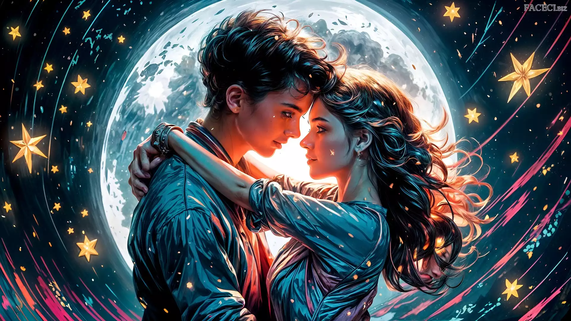 Kobieta, Zakochani, Księżyc, Niebo, Grafika, Gwiazdy, Mężczyzna - faceci.biz